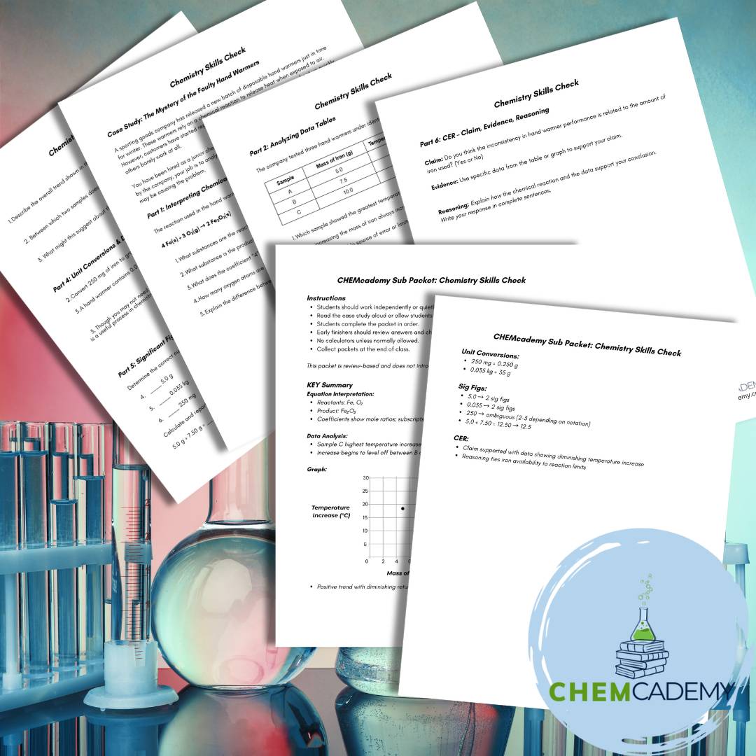 As part of the CHEMcademy email series (don't worry - I' won't flood your inbox!), you’ll also receive my Chemistry Sub Plans: Chemistry Skills Check packet.