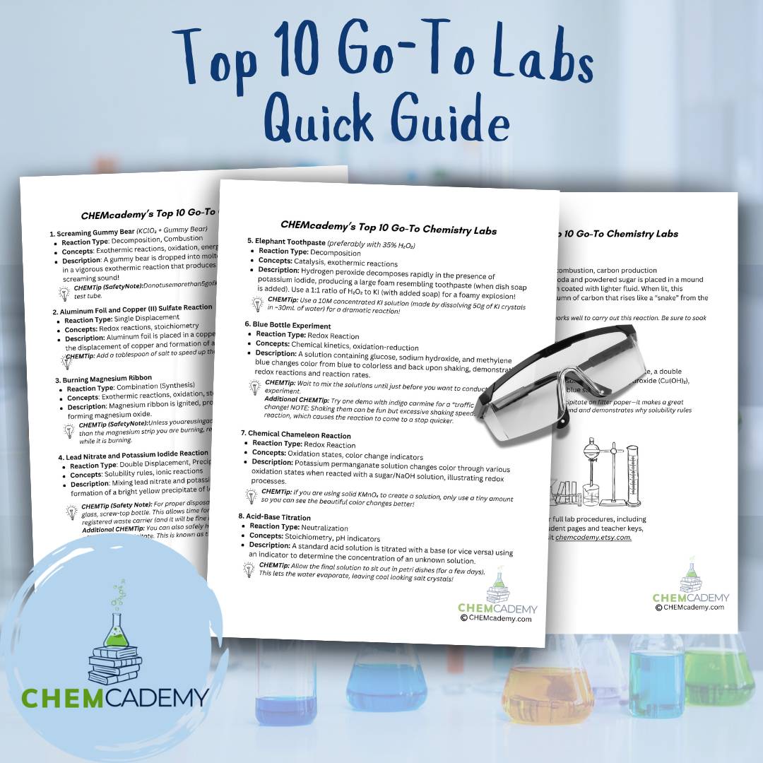 When you join CHEMcademy, you’ll instantly receive my Top 10 Go-To Labs Quick Guide—a teacher-only resource pulled straight from my own classroom experience.
